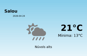 Predicció del temps per a Salou - 24 d'abril de 2026 Avui, a Salou, gaudirem d'un dia majoritàriament tranquil pel que fa al temps, amb...