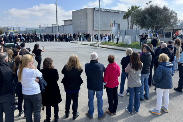 L’acte a Quatre Camins ha estat senzill i emotiu. Treballadors de la presó s’han aplegat a l’entrada del centre penitenciari per fer un “minut de silenci solidari” amb el conjunt de centres. El nebot de la cuinera de Mas Enric s’ha adreçat a tots ells abans de marxar a l’acte central que es farà a la presó del Catllar (Tarragonès).