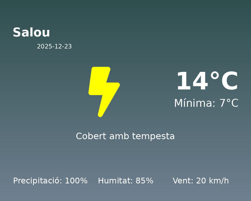 Benvinguts a la nostra actualització meteorològica per a la ciutat de Salou. Avui, dia 23 de desembre de 2025, el temps presenta característiques pròpies de les dates hivernals, amb una notable presència de precipitacions i condicions humides.