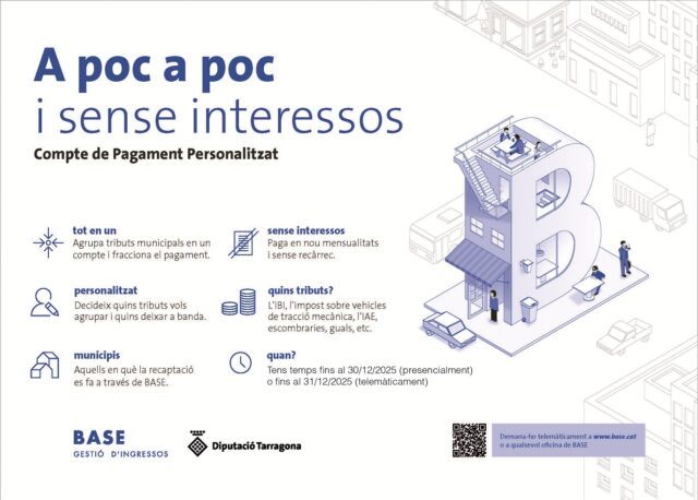 Fins al 31 de desembre, les persones interessades a beneficiar-se del Compte de Pagament Personalitzat de BASE poden fer la seva sol·licitud en línia a www.base.cat o de manera presencial a les oficines de BASE-Gestió d’Ingressos fins al 30 de desembre.