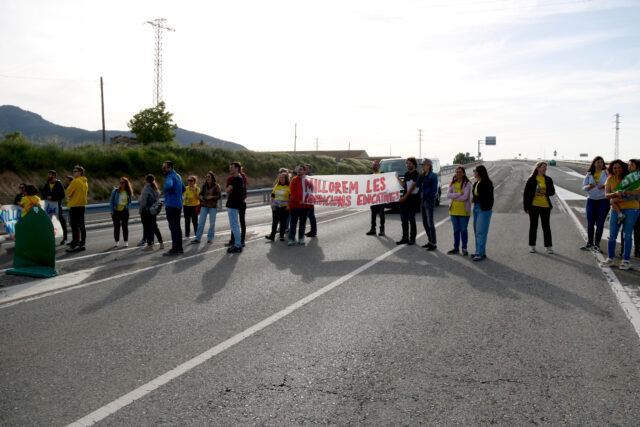 ACN Montblanc – Una trentena de docents han fet talls intermitents aquest dimarts des de les sis de la tarda a l’N-240 i a la rotonda d’accés a l’Ap-2 a Montblanc. Mestres i professors s’han mobilitzat per evidenciar el “malestar” de la comunitat educativa amb el Govern. Un professor de l’institut Martí l’Humà de Montblanc, Jordi Romeu ha avisat que es tracta d’una “lluita prolongada” que s’allargarà fins a l’any vinent, més enllà dels mesos de maig i juny quan hi ha convocades diverses jornades de vaga. “Això no va de floretes, ni de fer batucades ni timbals, sinó de doblegar la voluntat de l’administració”, ha assenyalat Romeu. Així, ha fet una crida a “paralitzar el país” durant les vagues per fer “pressió” a l’administració.